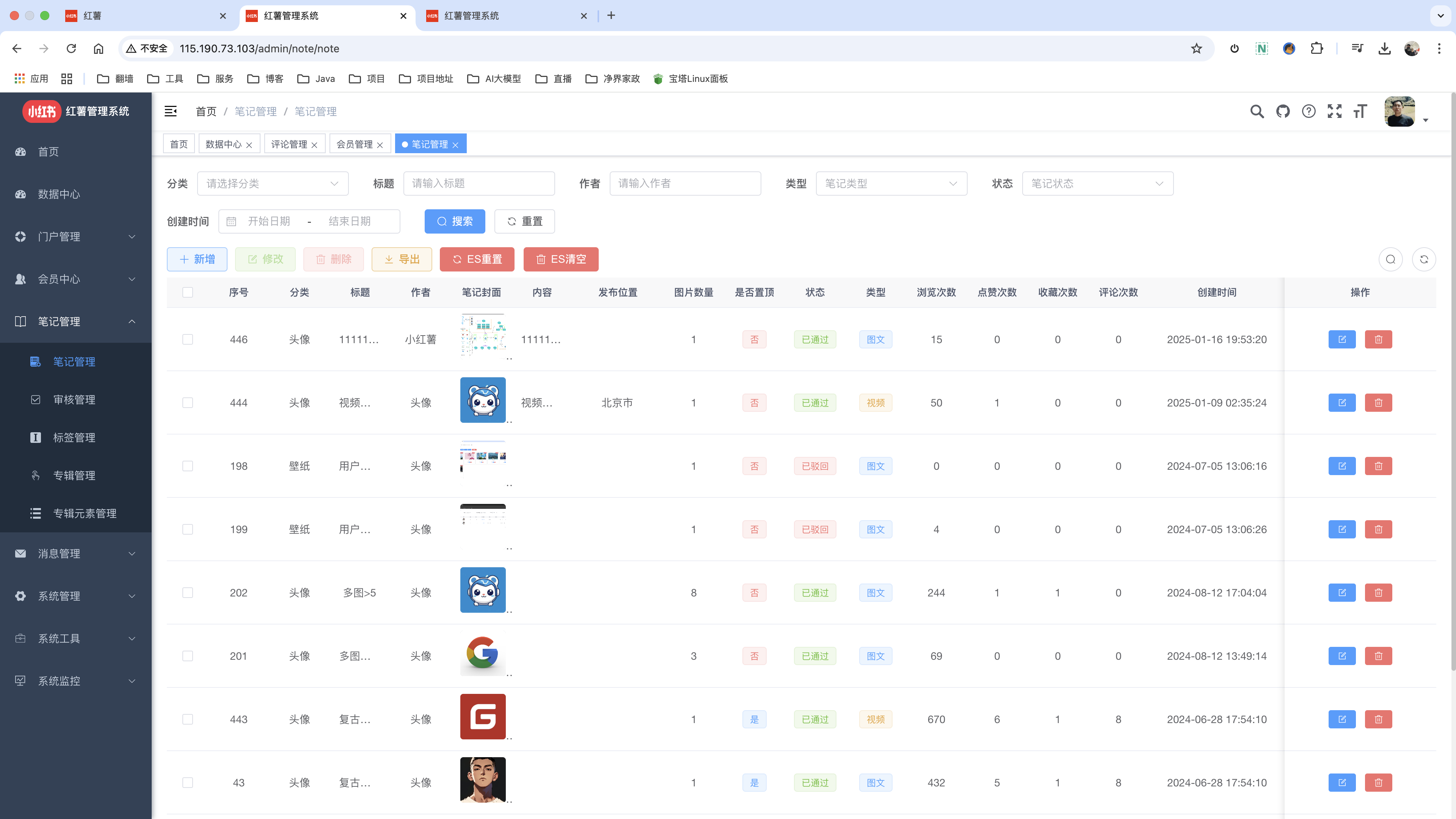 ## 项目简介 基于 SpringBoot + Vue 前后端分离的仿小红书系统,1:1 还原小红书页面及功能。本项目采用当下最主流的前后端分离架构,前端使用 Vue3 + TypeScript 开发,后端采用 SpringBoot 框架。项目完整还原了小红书的核心功能,包括内容发布、社交互动、私信聊天、搜索发现等模块,致力于打造一个功能完善、体验流畅的社交分享平台。 * [HongShu](https://gitee.com/Maverick_Ma/hongshu) 本项目为单应用版本 * [HongShu-Web](https://gitee.com/Maverick_Ma/hongshu-web) 用户端采用Vue3、ts、Element UI。 * [HongShu-Admin](https://gitee.com/Maverick_Ma/hongshu-admin) 管理端采用Vue3、Vite、Element UI。 * 后端采用Spring Boot、Mybatis-plus、Spring Security、Redis & Jwt。 * 权限认证使用Jwt,支持多终端认证系统。 ## 项目背景 小红书作为当下最受欢迎的生活方式分享社区,拥有海量的用户群体和丰富的内容生态。本项目旨在通过技术手段还原小红书的核心功能,不仅可以学习到完整的全栈开发流程,还能深入理解大型社交平台的架构设计和业务实现。 ## 项目特色 ### 用户端内置功能 1. 瀑布流展示笔记、懒加载笔记图片 2. 使用 ElasticSearch 做关键词搜索查询 3. 支持私信聊天,关注、评论、点赞和收藏等功能 4. 使用 WebSocket 做消息通知,实现私信聊天消息实时通知,消息页面实时显示用户未读消息数量 5. 双Token登陆机制,使用 Redis 做对象缓存 6. 笔记发布和修改,支持本地存储和Minio存储 ### 管理端内置功能 1. 用户管理:该功能主要完成系统用户配置。 2. 角色管理:角色菜单权限分配、设置角色按机构进行数据范围权限划分。 3. 菜单管理:配置系统菜单,操作权限,按钮权限标识等。 4. 日志管理:包括登录日志和操作日志,系统登录日志记录查询包含登录异常,系统异常信息日志记录和查询。 5. 在线用户:当前系统中活跃用户状态监控。 6. 定时任务:在线(添加、修改、删除)任务调度包含执行结果日志。 7. 系统接口:根据业务代码自动生成相关的api接口文档。 8. 服务监控:监视当前系统CPU、内存、磁盘、堆栈等相关信息。 9. 缓存监控:对系统的缓存信息查询,命令统计等。 10. 连接池监视:监视当前系统数据库连接池状态,可进行分析SQL找出系统性能瓶颈。 ## 2.0版本功能 1. 新增uniapp移动端 2. 笔记支持视频和live图类型 3. 新增七牛云、阿里云、腾讯云等多种OSS对象存储方式,可动态配置 4. 加入协同过滤算法实现推荐功能 ## 3.0版本功能 1. 重构实现 SpringCloud 微服务架构版本,采用 Nacos 作为服务发现和配置中心,轻松完成项目的配置的维护 2. 引入Arco-Design字节提供的前端UI实现新的后台管理页面 3. 引入高德地图 4. 加入商城购物功能 5. 使用netty重构消息聊天 6. 使用 MQ+Redis 优化点赞、收藏、浏览功能 ## 说明: 1. 后续只会更新微服务版(HongShu-Cloud),演示站会同步更新 2. 由于微信小程序每次发布审核过于严苛和繁琐,暂时不再提供体验环境,但uniapp端依然会继续兼容小程序 3. 演示站部署的是微服务版本,与开源版本功能存在一定差异,具体请参考: - 目前,微服务版源码暂未开源,详情可添加微信了解:coder_xiaomage - 如有项目问题、部署需求、项目定制也可微信联系 ## 演示站(微服务版本-持续更新) - 【web端】 ➡️ [点我进入](http://115.190.73.103) - 【管理端】 ➡️ [点我进入](http://115.190.73.103/admin/) - 【移动端】 ➡️ [点我进入](http://115.190.73.103/app/) 或扫码体验: * 也感谢小伙伴们打赏支持更新升级服务器❤️ ## 技术选型 * 系统架构图 ## 项目地址 目前项目托管在 Gitee 和 Github 平台上中,欢迎大家 Star 和 Fork 支持~ - Gitee地址:https://gitee.com/Maverick_Ma/hongshu - Github地址:https://github.com/Ma-YongJian/HongShu ## 项目文档 * 文档及资料会暂时放到我的个人博客:[点我进入](https://mayongjian.cn) ## 视频演示 - [点击查看](https://www.bilibili.com/video/BV1QP8dekEGq/?spm_id_from=333.999.list.card_archive.click&vd_source=ec9224821314432ac6e12dc7d500d74b) ## 致谢 红薯项目参考了很多开源项目的解决方案,开源不易,感谢分享 - 感谢 [若依](https://gitee.com/y_project/RuoYi) 提供的 RuoYi 项目:https://gitee.com/y_project/RuoYi - 感谢 [xiaozhao](https://gitee.com/xzjsccz/xiaohongshu) 提供的前端仿小红书源码:https://gitee.com/xzjsccz/xiaohongshu - 感谢 [陌溪](https://gitee.com/moxi159753/mogu_blog_v2) 提供的 蘑菇博客 项目:https://gitee.com/moxi159753/mogu_blog_v2 - 感谢 [七牛云](https://portal.qiniu.com/signup?utm_source=kaiyuan&utm_media=mogu) 提供的免费云存储和CDN服务 - 感谢 [jetbrains](https://www.jetbrains.com/?from=mogu_blog_v2) 提供的开源License ## 演示图 * web端: