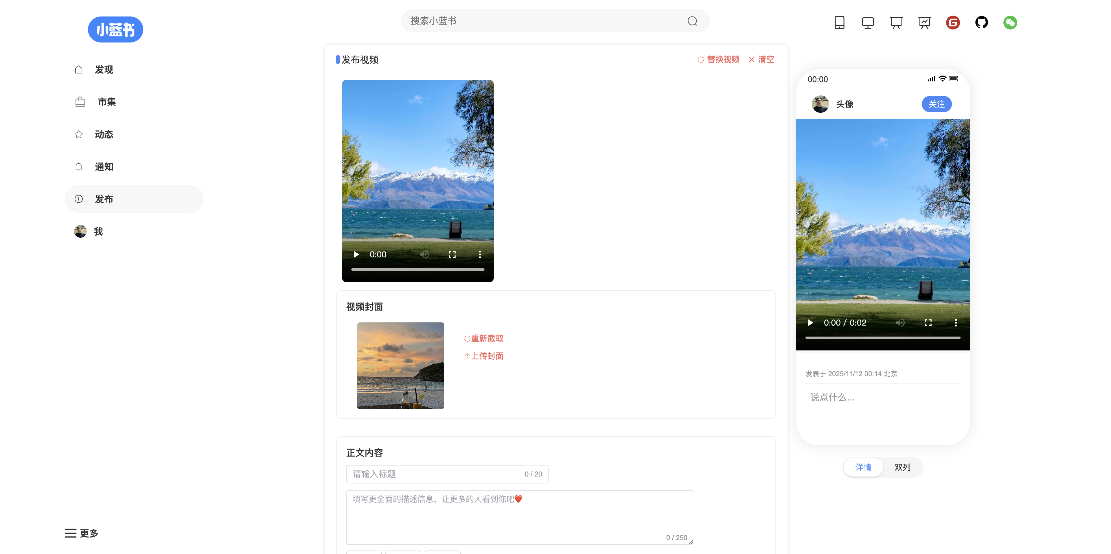 1:1 高仿小红书,具备内容发布、商品交易、社交互动、算法推荐、即时通讯等核心功能,适合全栈学习与实战。