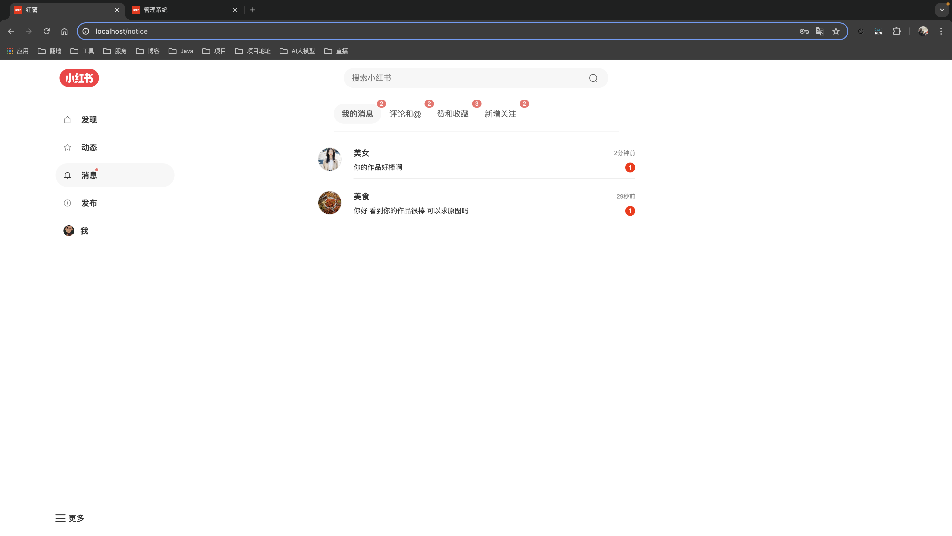 一款高仿小红书的全栈开源项目,支持内容发布、社交互动、即时通讯等核心功能,适合全栈学习与实战。