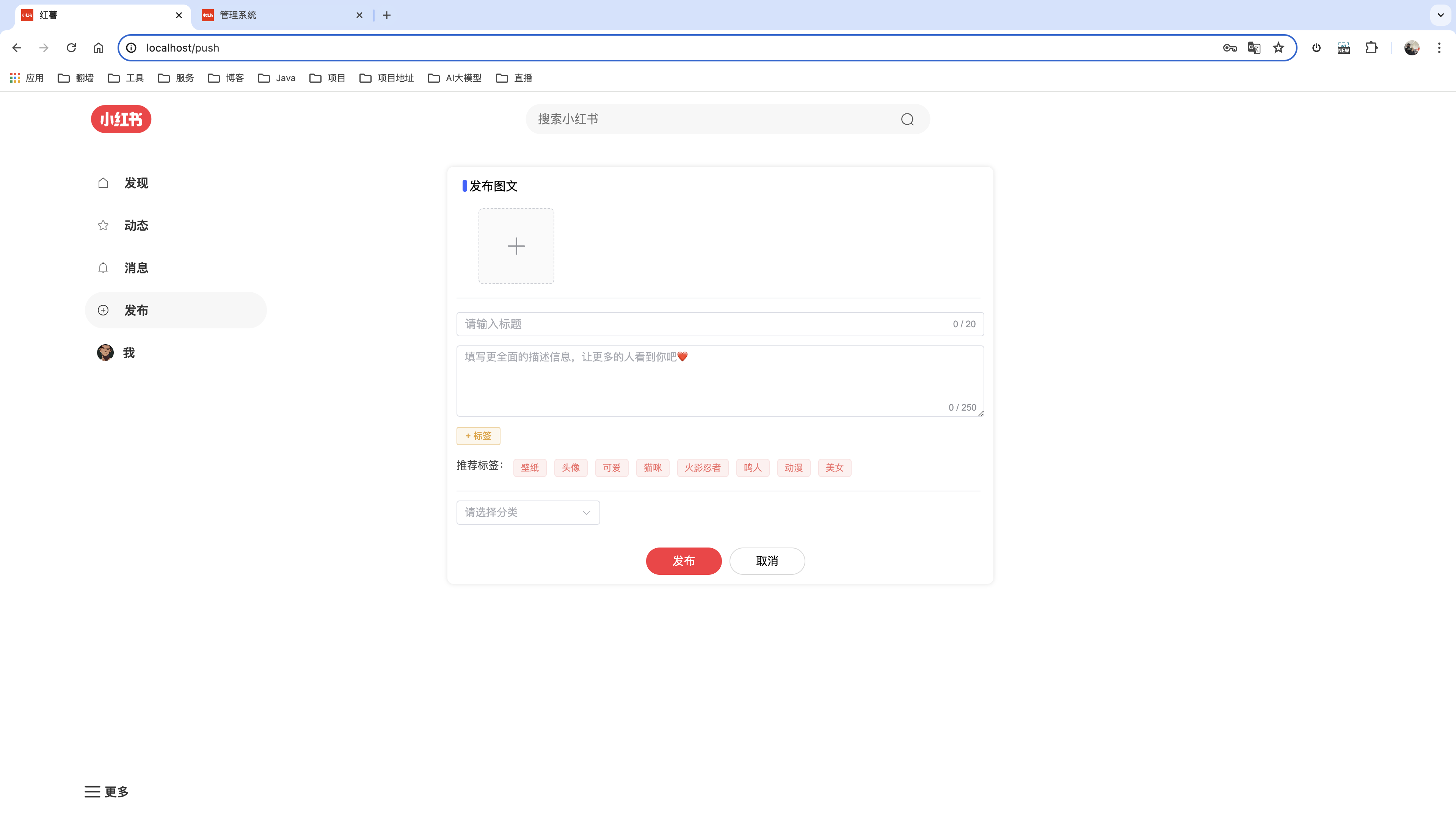 基于SpringBoot+Vue前后端分离仿小红书项目