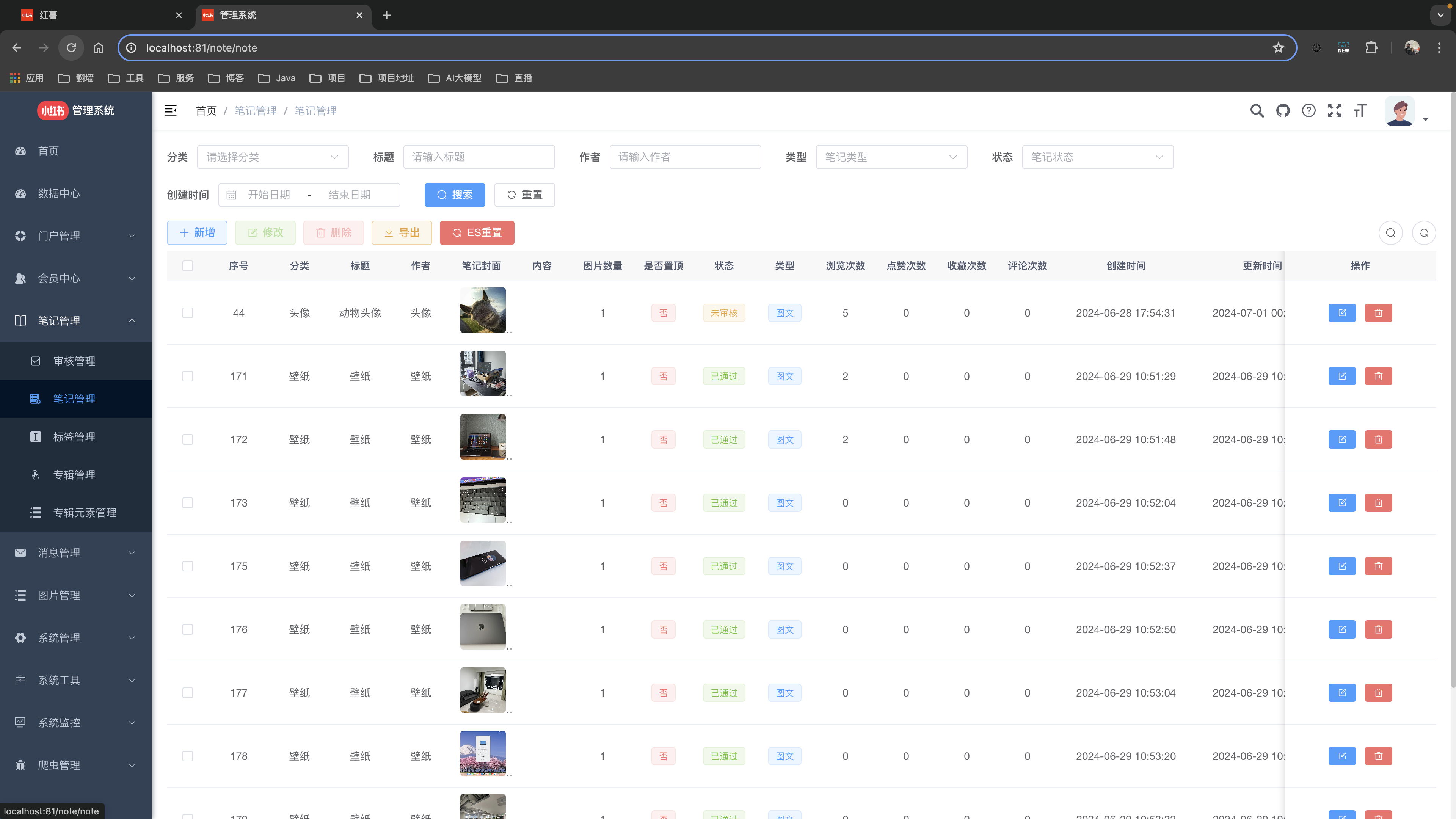 基于 SpringBoot + Vue 前后端分离的仿小红书项目