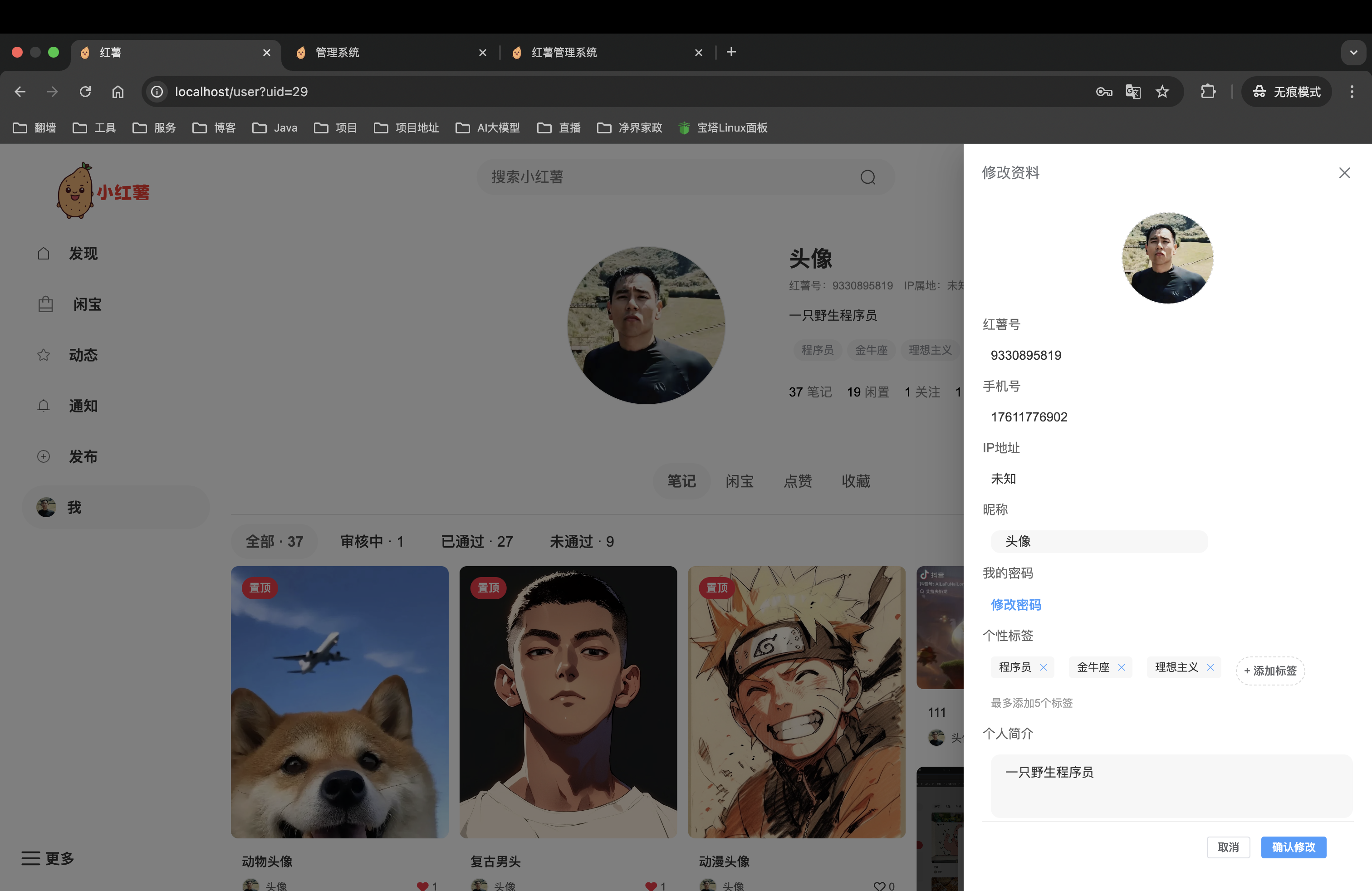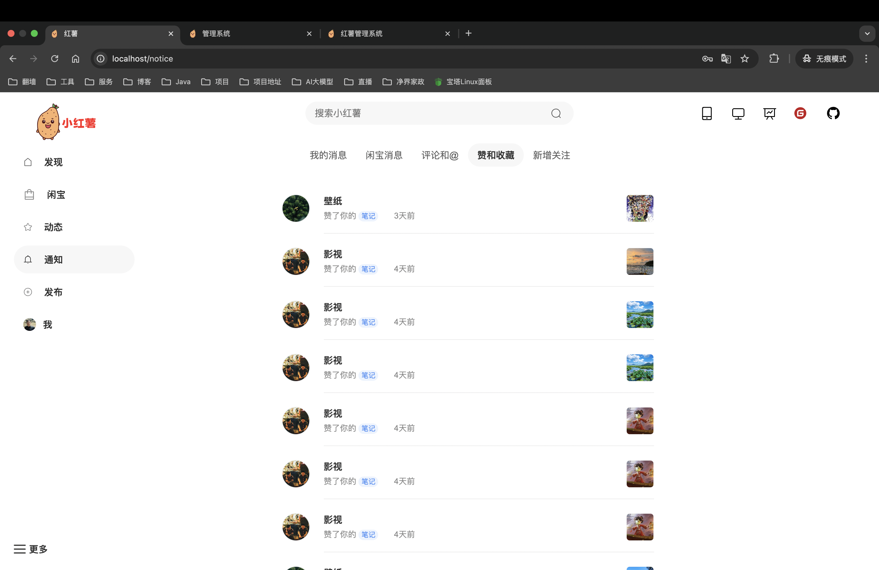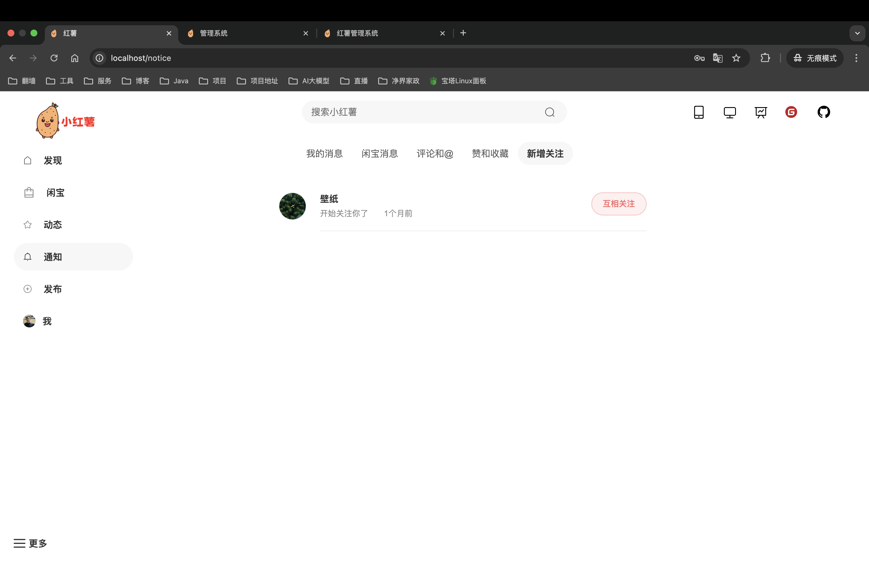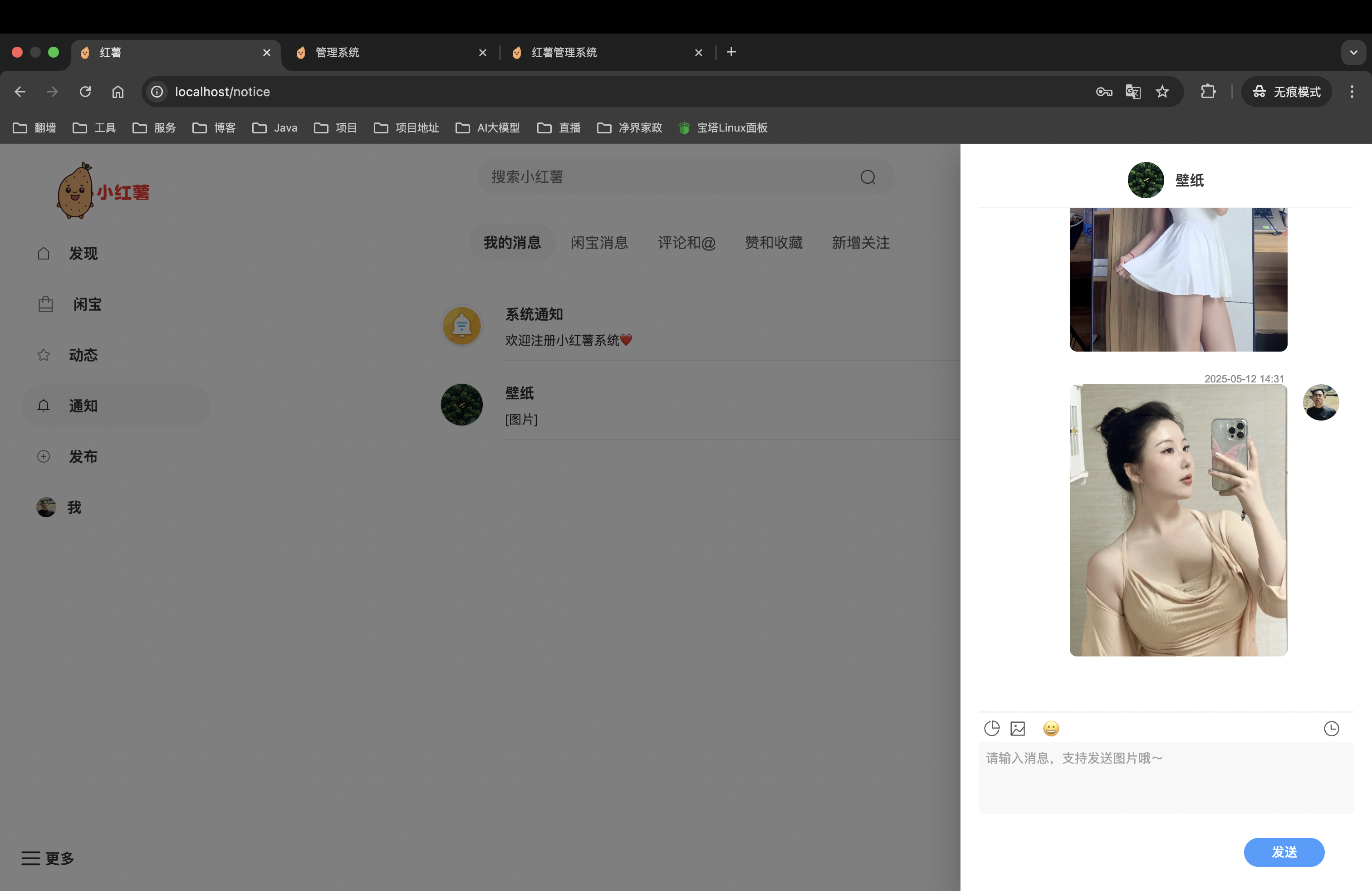 一款高仿小红书的全栈开源项目,支持内容发布、社交互动、即时通讯等核心功能,适合全栈学习与实战。