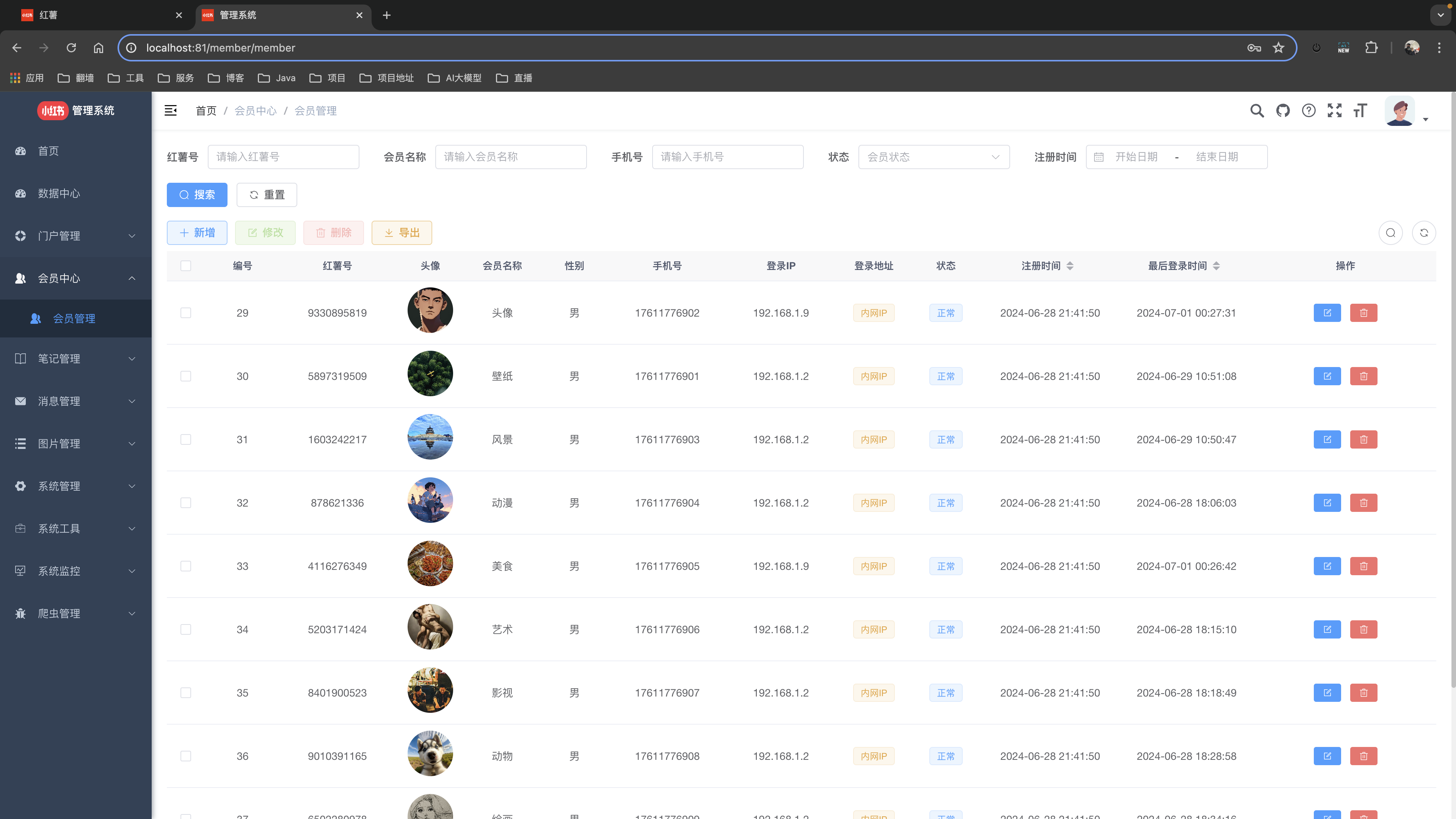 基于SpringBoot+Vue前后端分离仿小红书项目