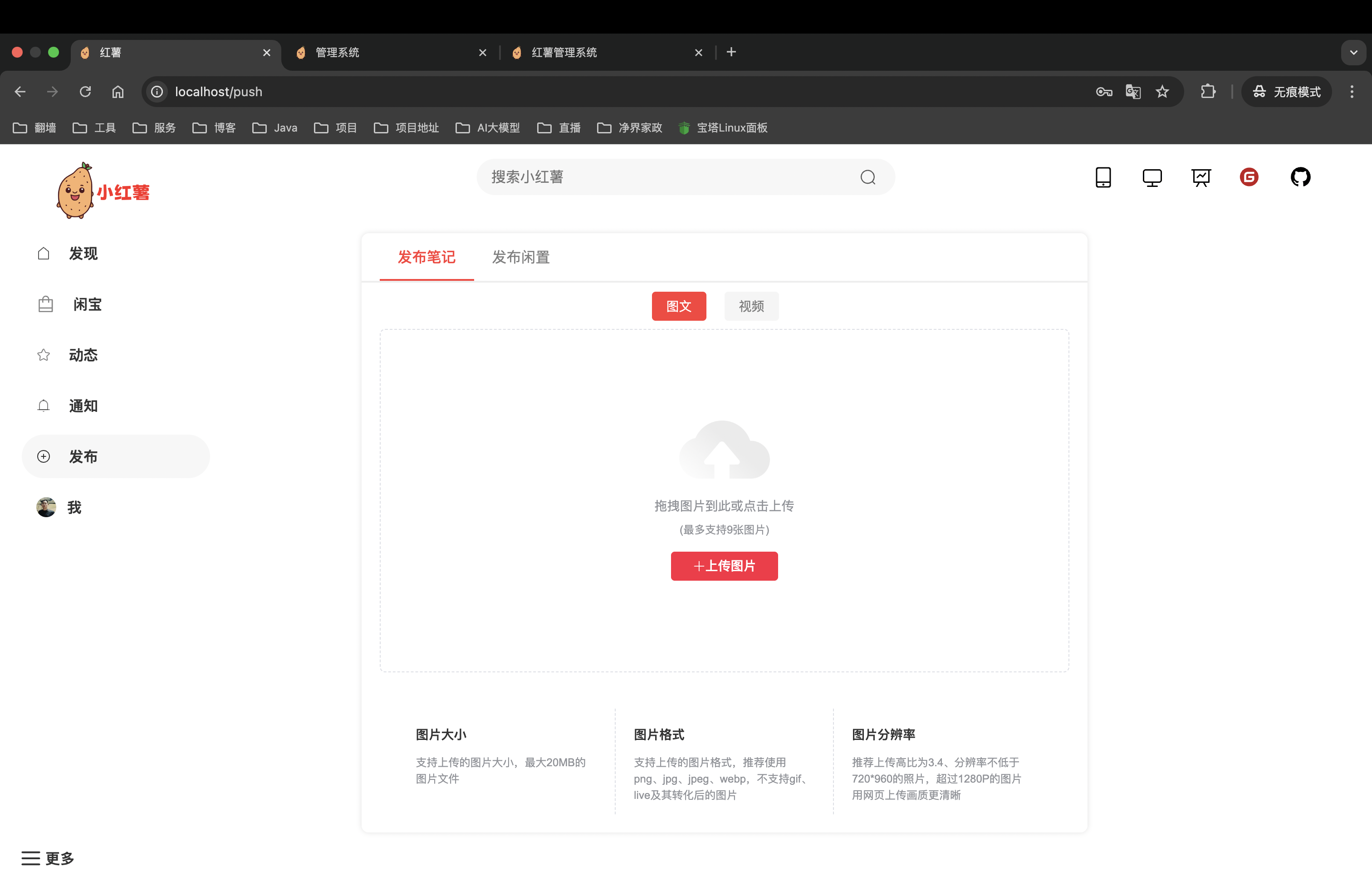 一款高仿小红书的全栈开源项目,支持内容发布、社交互动、即时通讯等核心功能,适合全栈学习与实战。