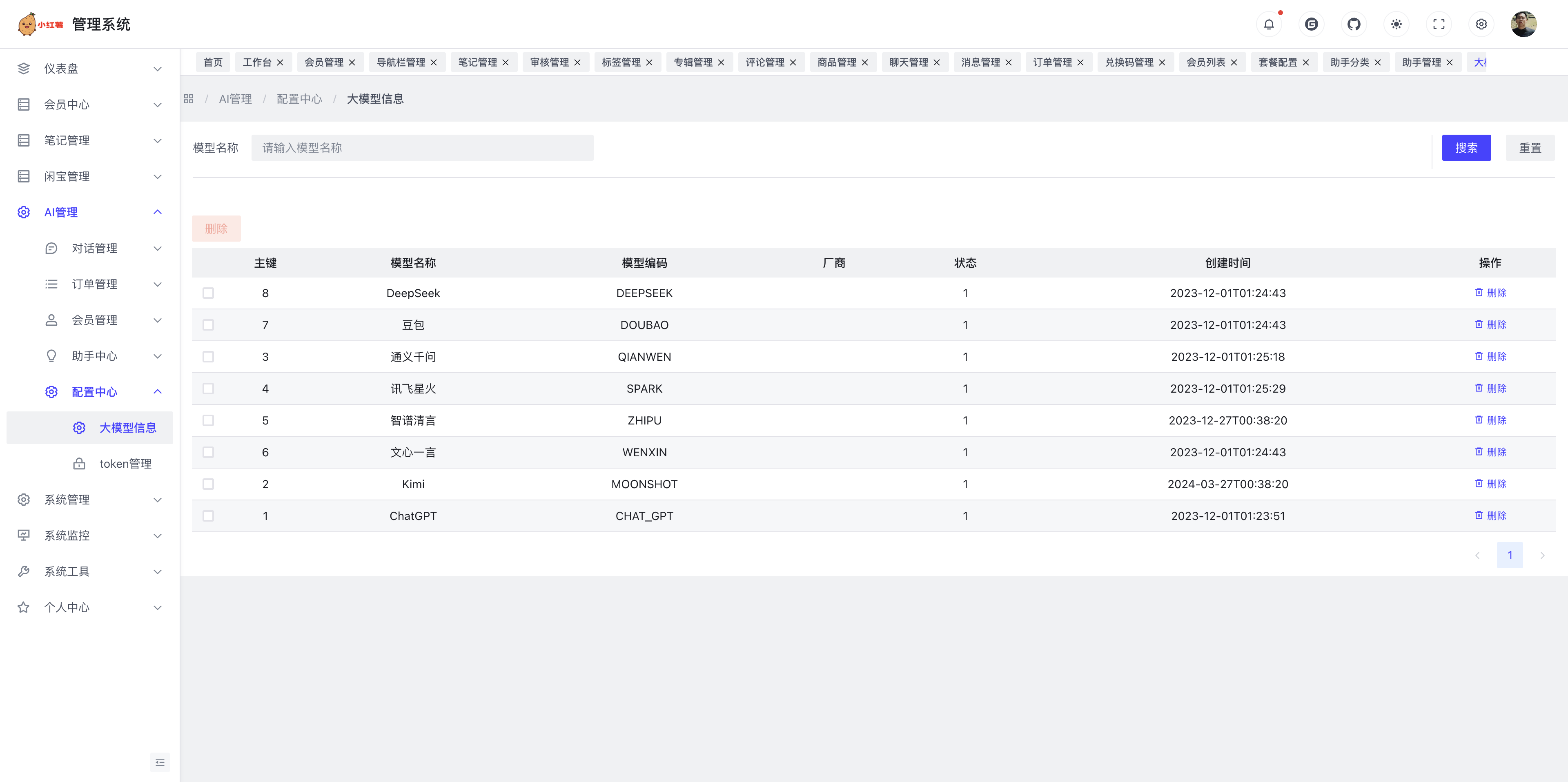 | 🤖 AI大模型 | ChatGPT + DeepSeek + 多模型适配 | ✅ 8+模型支持、智能创作、对话系统 |